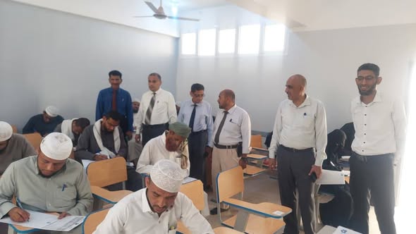 واطلع نائب رئيس الجامعة ومعه مساعده لشؤون الدراسات العليا والبحث العلمي الدكتور عمر بازغيفان، وعميد كلية التربية الأستاذ الدكتور عمر عبيد باسعد، وعميد كلية الآداب واللغات الأستاذ الدكتور رياض عبدالرحمن منقوش، وعميد كلية البنات الدكتور مرشد الجرو، وعدد من نواب العمداء للدراسات العليا، مشيدين بمستوى الإعداد والتنظيم الجيد للعملية الامتحانية وتوزيع الطلاب والطالبات البالغ عددهم ٧٧ طالبا وطالبة، موزعين على القاعات الامتحانية في أجواء هادئة ومناسبة .