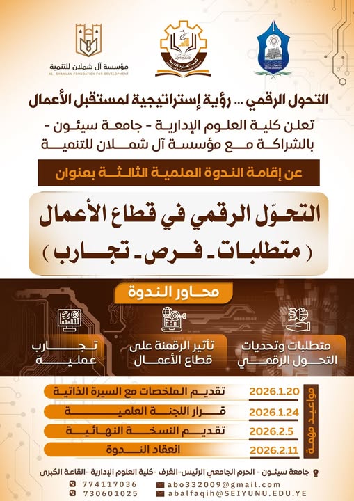 جامعة سيئون تشارك في الندوة العلمية الدولية «تحويل المستقبل» بدعوة من اتحاد الجامعات العربية